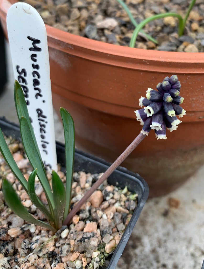 Brian Mathew placed Muscari discolor within the Pseudomuscari group in ‘The Smaller Bulbs’ owing to the lack of constriction at the mouth of the flowers.
