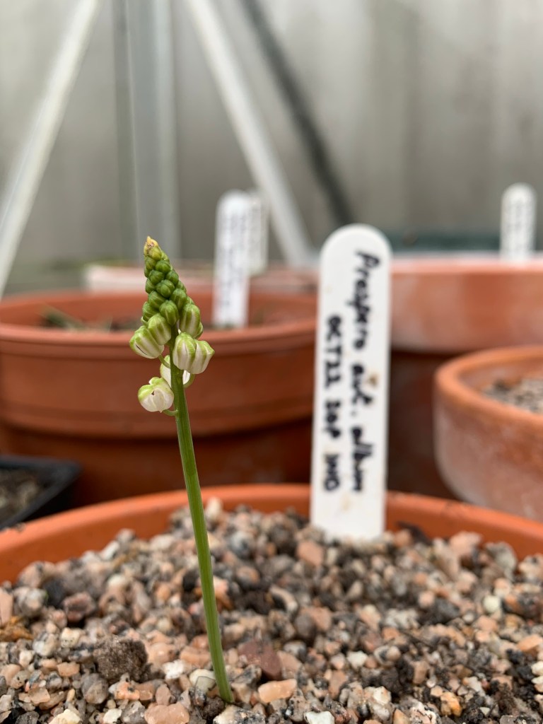 A little jewel; pure white form with yellow anthers. Stem and leaves are vivid green.